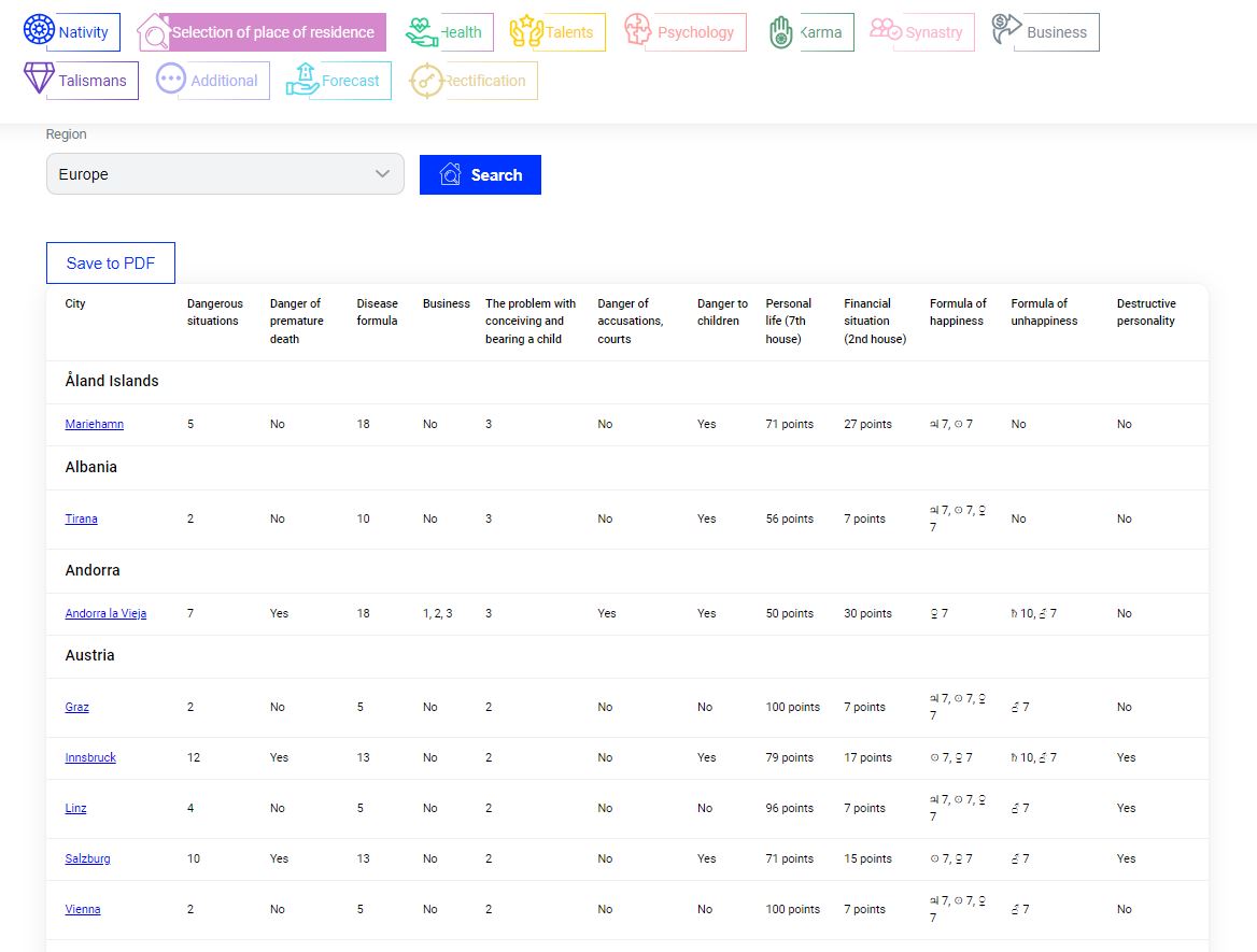 Our goal is to find a location where the danger score is reduced, the risk of premature death is absent, and the illness score is lowered. The city of Graz, Austria, meets these criteria. We can see that the danger formula amounts to only 2 points, which is below the threshold of 3 points. Having at least 3 points in a person’s chart indicates that they will experience dangerous situations, such as accidents, emergencies, or risky surgeries and hospitalizations. The higher the score, the more frequently such events occur.