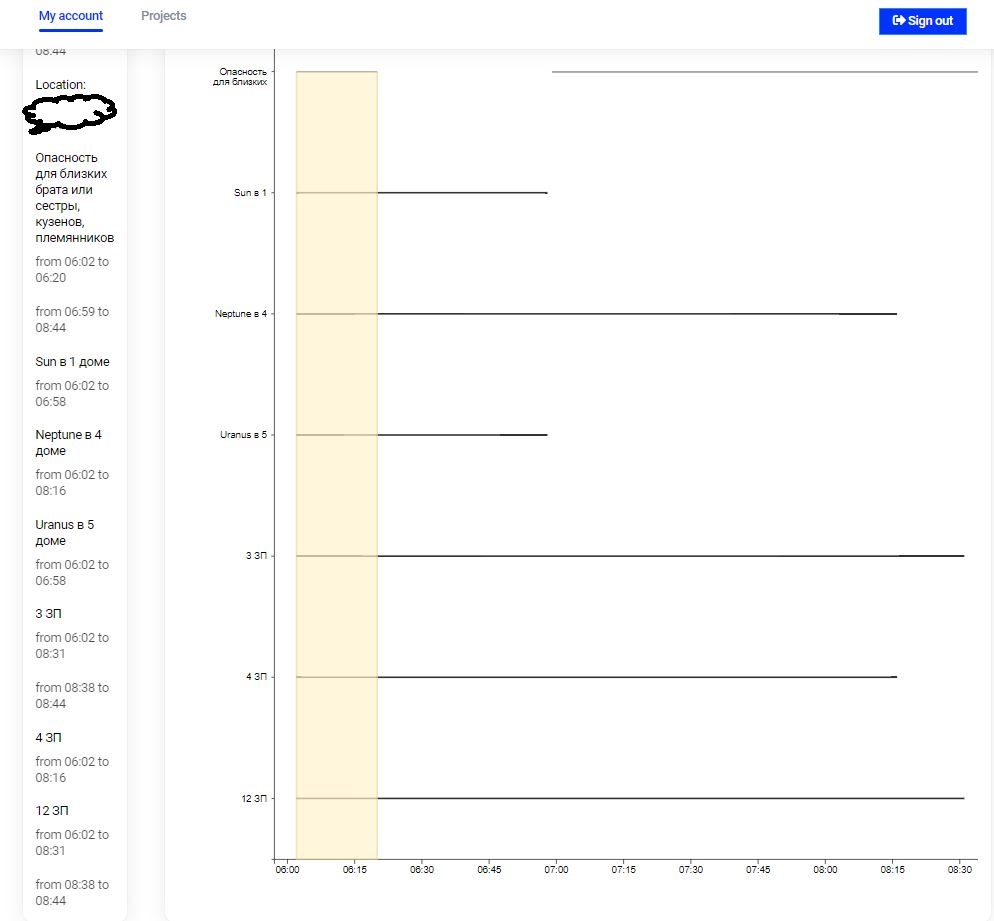 Let’s input these conditions into the astrological software and see which birth time interval we get. This young man still resides in the city where he was born, so his natal chart and local chart align perfectly.